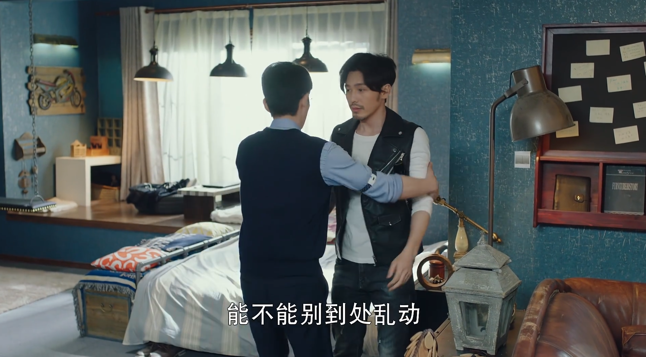 Zhao Yunlan stands up and moves towards the nearby table, clearly looking for something. He knocks over the owl decoration (why does he have a lantern decoration that looks exactly like the Guardian lantern by his bed??), startling Shen Wei, who rushes over to help him.